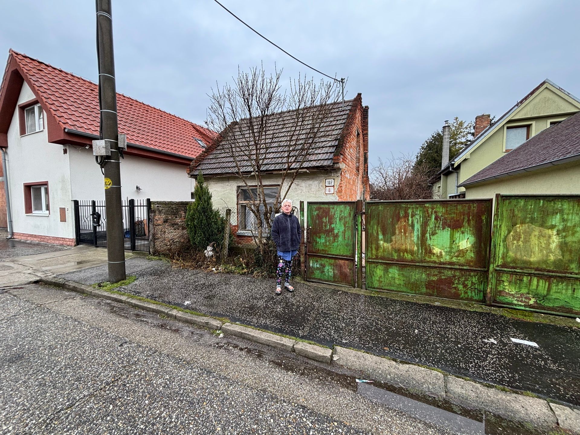 Pani Zuzana pred zdevastovaným domom na Škovrankovej ulici.